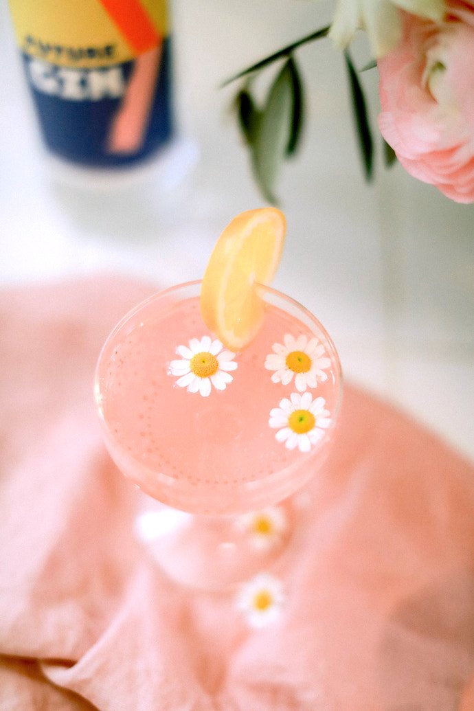 Hi, spring! So happy to see you! Nothing says springtime to me more than daisies and roses. You can’t eat daisies though, so I’m swapping it for chamomile in this tasty (and pretty!) spring cocktail. Don’t worry, you can get everything you need at Trader Joe’s and it’s sure to be a crowd-pleaser.